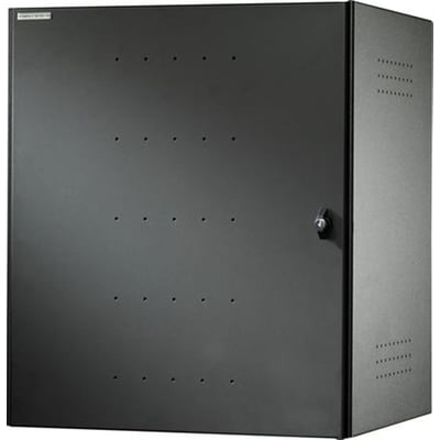 Top- og bundplade har 2 perforerede felter for passiv ventilation, og mulighed for eftermontage af ventilatorer. Kabelgennemføring bagerst i skabet, helt inde ved væggen. Lakeret i RAL 9005, sort.
