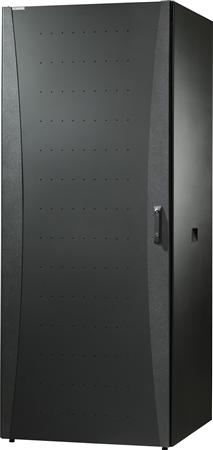 NEXT STEP gulvrack med pladedør. (BxHxD) 600 x 1920 x 800 mm. Lakeret i RAL 9005, sort. Maks. apparatdybde 520mm. 19" profiler med tydelig HE markering i front.