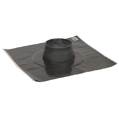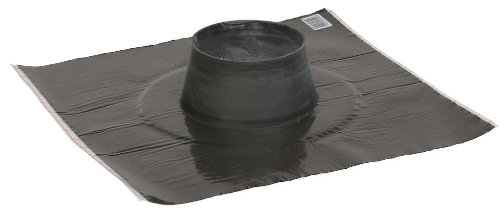 Radonmanchet med selvklæbende krave af alu-butyl til tætning omkring rørgennemføringer. Tilpasset rørstørrelserne 32, 50, 75, 110 og 125 mm.