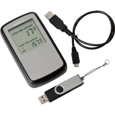Radondetektor fra Elma Instruments til simpel måling af radon. Tænd instrumentet, og efter et par dage har du en indikation af radonniveauet. Plus modellen logger fugt, temperatur og atmosfærisk tryk.