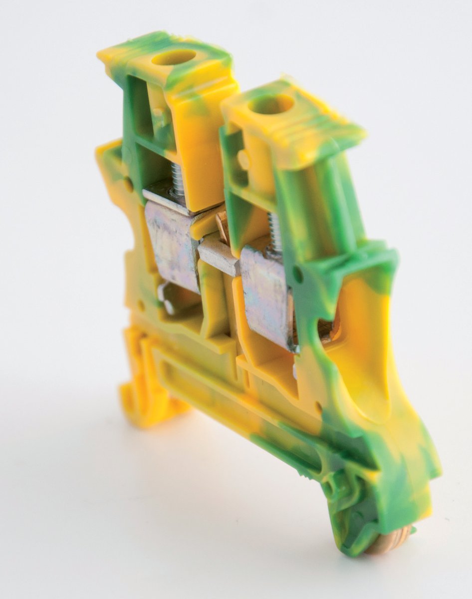 Legrand Viking 3 rækkeklemme til din-skinne. Tilslutning for beskyttelsesleder med metal base. Nominel tværsnit: 6 mm².