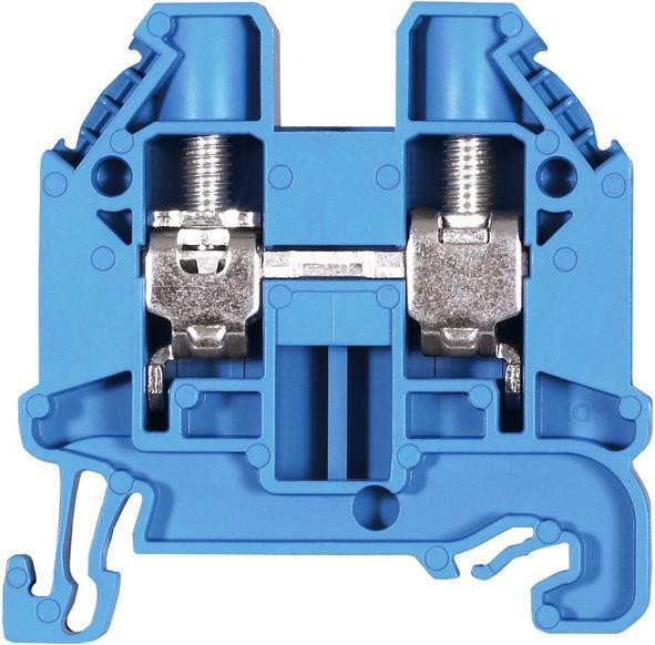 Rækkeklemme med skrue til 10/10mm2 ledninger. Denne model er en WT 10 i blå fra Wieland.