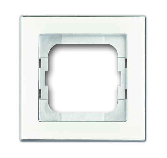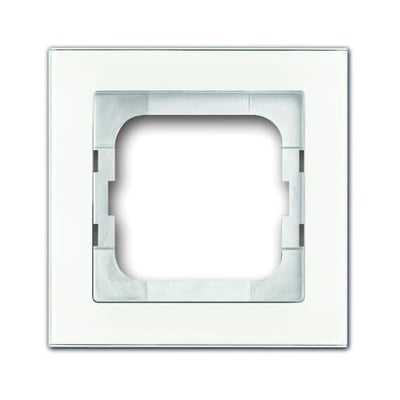 Elegant Axcent ramme fra ABB i hvidt glas. Perfekt til at skabe en stilfuld finish i enhver installation. 1 modul.