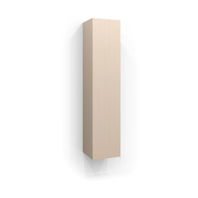 Skabet fås i forskellige træfarver og med flade døre, der kan monteres på enten højre eller venstre side, hvilket giver fleksibilitet i forhold til indretningen af dit badeværelse. Rammen inkluderer to træhylder og en til to glashylder afhængigt af højden.