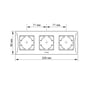 Ramme til 3-polet kontakter i sort, horisontal montering. IP20 klassificeret med dimensioner 228x86x9 mm.