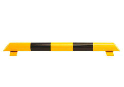 Rammebeskyttelsesbøjle af 3 mm stål, 1200 mm lang, gul/sort. Stopper løftevogne, rullecontainere og transportvogne. Beskytter maskiner, sikkerhedsinstallationer m.m.