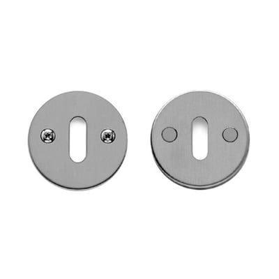 Nøgleskilt til mellemdørslåsekasse med centerafstand på 27 mm, udført i matbørstet rustfrit stål (AISI 304). Leveres i sæt med M4x84 mm skruer.