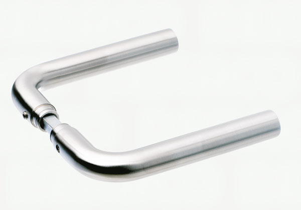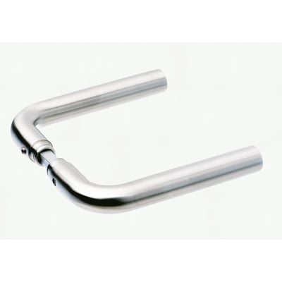 Dørgreb i rustfrit stål med L-formet design og børstet overflade. Passer til dørtykkelser på 34-58 mm.