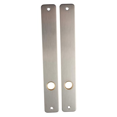 Langskilt på 215x55x2 mm, glat og kun til dørgreb forneden. Leveres som et sæt inklusive træskruer på 3,5x13 mm.