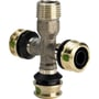 Raxofix kryds t-stykke fra Viega. Innovativt rørledningssystem i kunststof (alupex) til drikkevands- og varmesystemer. Dimension: 1/2" x 16 mm.