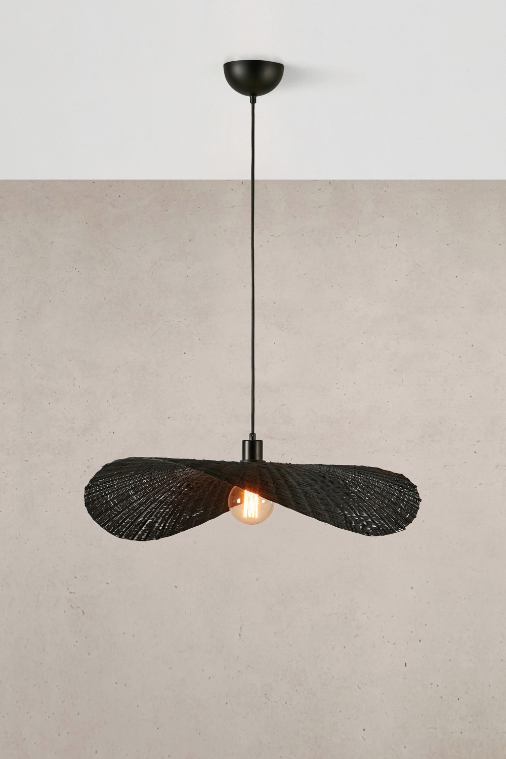 Den elegante RAYO pendel i mat sort design er en stilfuld tilføjelse til ethvert indendørs rum. Med sit minimalistiske udseende og enkle design passer den perfekt over spiseborde, i stuer eller entreer.