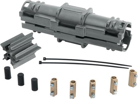 Raytech samledåse med indbygget gel, designet til flerlederkabler med op til 5 ledere. Inkluderer 5 sektions opdelingsklemme og skrueklemmer for sikker montering. Velegnet til lige- og Y-forgreningsforbindelser, inklusiv armeret kabel. Godkendt til nedgravning.