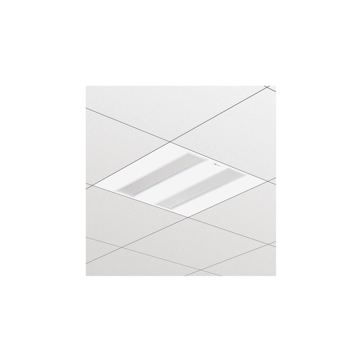 Indbygningsarmatur i slankt design med mikrolinseoptik (MLO), der giver behageligt og blændfrit lys, og som overholder standarderne for kontorbelysning. Armaturhuset er af hvidlakeret stål.