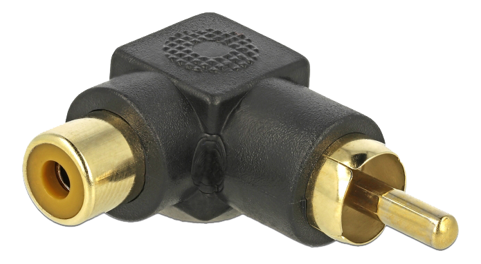 Delock RCA adapter til at vinkle den hunlige port på en RCA enhed, f.eks. et TV. Et RCA-kabel kan tilsluttes uden problemer, hvis den eksisterende RCA hun-port er svær at tilgå.