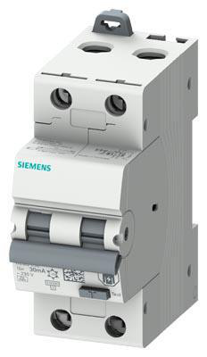 Kombiafbryder RCBO, 10 kA, 2P Type A, 30 mA, B-karakteristik, In: 20A Un: 230V reduced i2 i2=1,3xIn - Siemens.