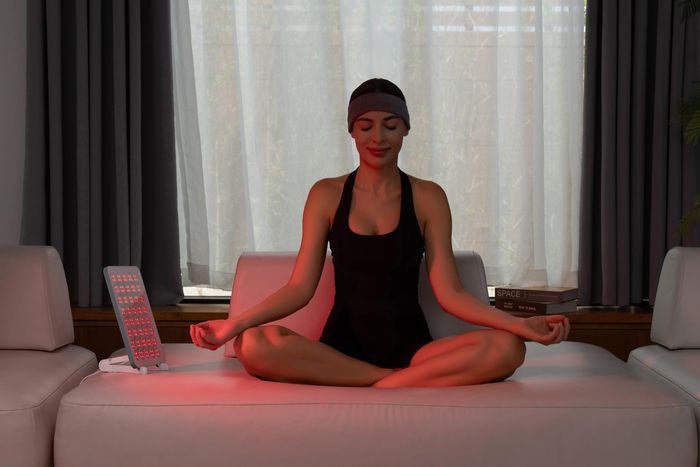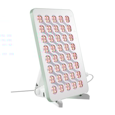 Effektivt red light therapy panel til hjemmebrug. Udsender rødt og nær-infrarødt lys for velvære og hudpleje.