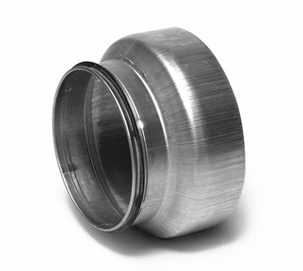 Ventilationsreduktion (muffe/nippel) udført i galvaniseret stål med dobbeltlæbetætning. Centrisk model med rørdimensioner Ø125mm til Ø100mm.