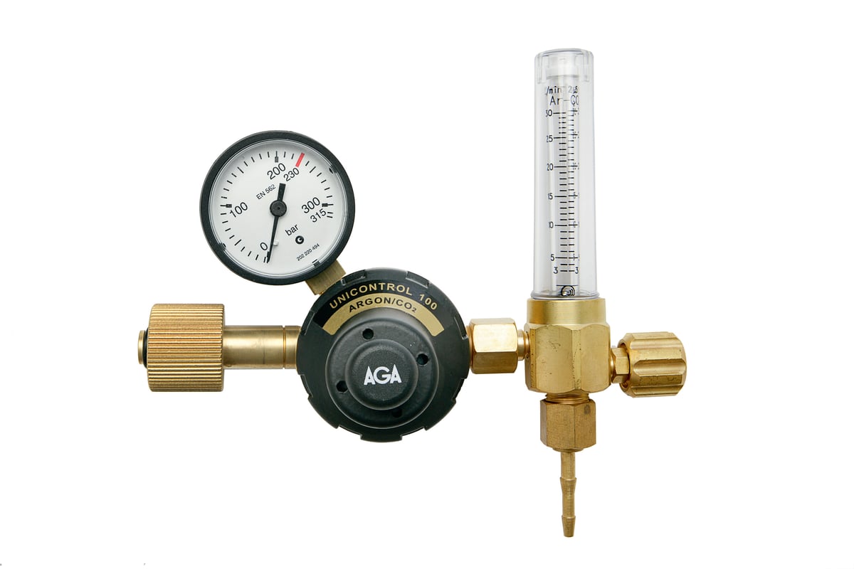 Unicontrol 100 HT er beregnet til MIG/MAG- og TIG-svejsning. Regulatoren er forudindstillet til et arbejdstryk på 2,5 bar for at give en præcis flowindstilling.