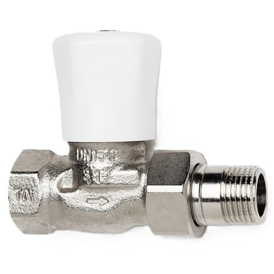 Denne håndregulerede radiatorventil med forindstilling er velegnet til varmeanlæg. Ventilen er forniklet og har en gevindstørrelse på 3/8".