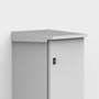 Regntag til udendørs skabe. Skråt tag med dryppekant. Bearbejdning af skabet er nødvendig for montage. Øger skabets dimensioner med H:60 mm, D:20 mm og B:20 mm.
