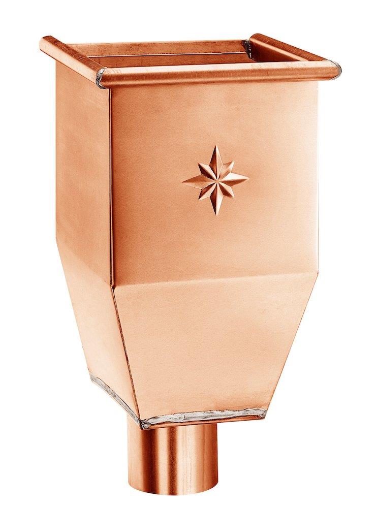 VMZINC kobber regnvandssamlerkasse med studs, 76 mm, 200 x 200 x 345 mm.