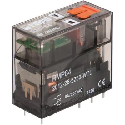 Stikbensrelæ / industrirelæ, 2C/O 8A 230VAC uden LED. Sokler under relaterede vare (Sokkel: GZM80 / GZP80).