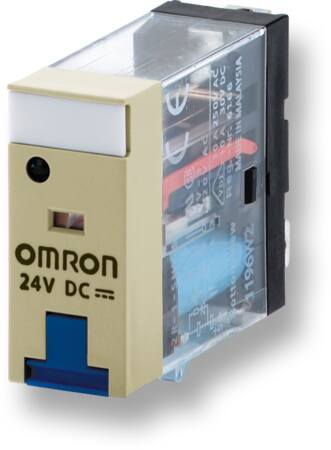 Plug-in relæ med 8 poler, DPDT-konfiguration og en strømstyrke på 5 A. Inkluderer mekaniske og LED-indikatorer samt en låsbar testknap og etiketfacilitet.