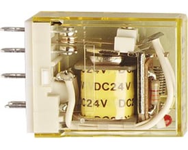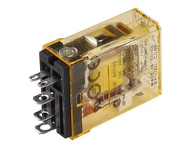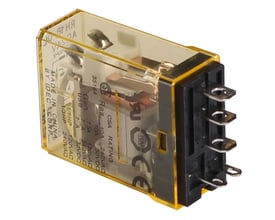 Power relæ med 2 kontaktsæt og en belastning på 10A.