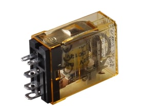 2-polet relæ med en spolespænding på 24V AC og en mærkestrøm på 10A. Ideel til styring af elektriske kredsløb.