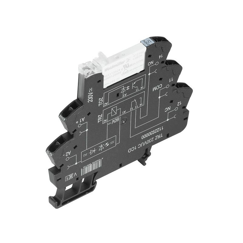 Relæmodul 24-230VUC, 6A 1CO kontakt (AgSnO), fjederklemme, uden testknap, med grøn LED og ensretter TRZ 24-230VUC 1CO AGSNO.