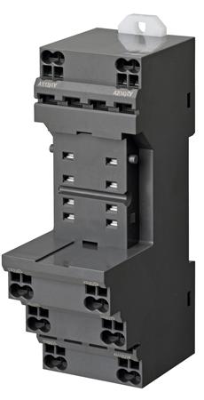 Relæsokkel for DIN skinnemontage eller direkte montage. Soklen er 31 mm, 8 polet og har push in terminaler.