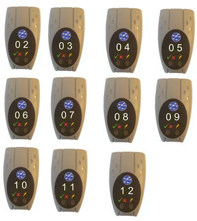 Remote til Navitek testere, bestående af 11 stk. nummereret 2-12. Bruges til at identificere netværket.