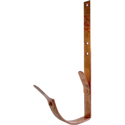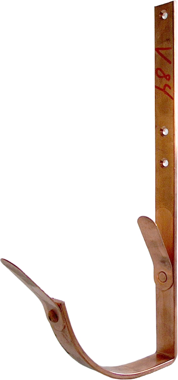Kort rendejern i kobber med for- og bagfjeder, designet til 1/4-rund arkitekt tagrender.