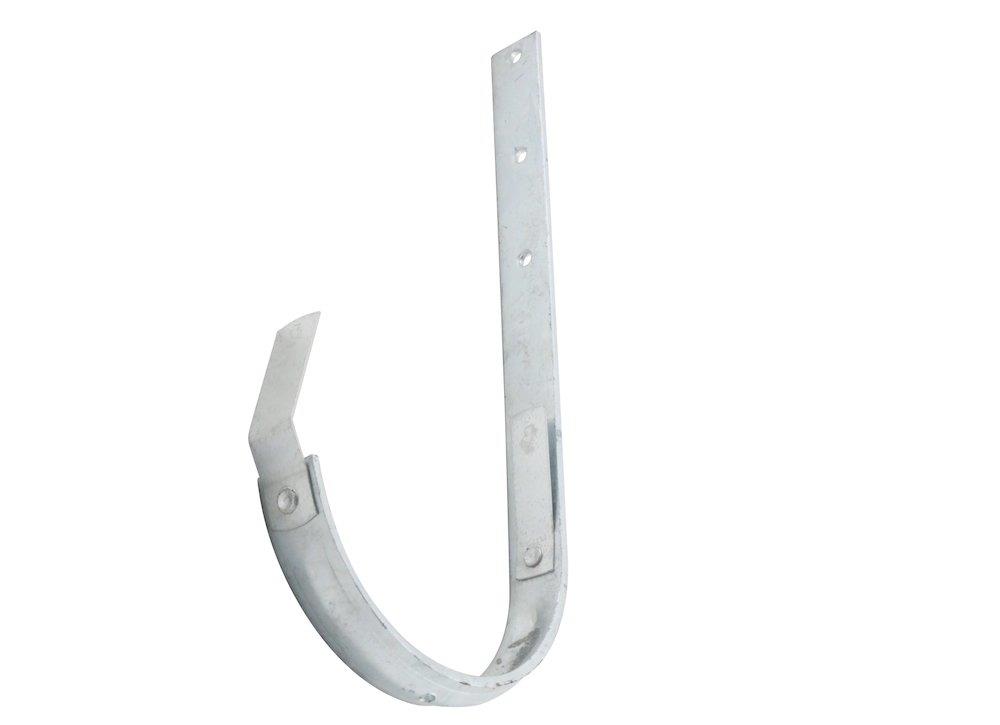 Robust, galvaniseret rendejern fra Lehmann med forstærkning og for- og bagfjeder, designet til 11" halvrunde tagrender.