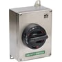 - Rustfri kapsling (AISI 316) med sort, aflåsbar håndtag og manipuleringsknap.
