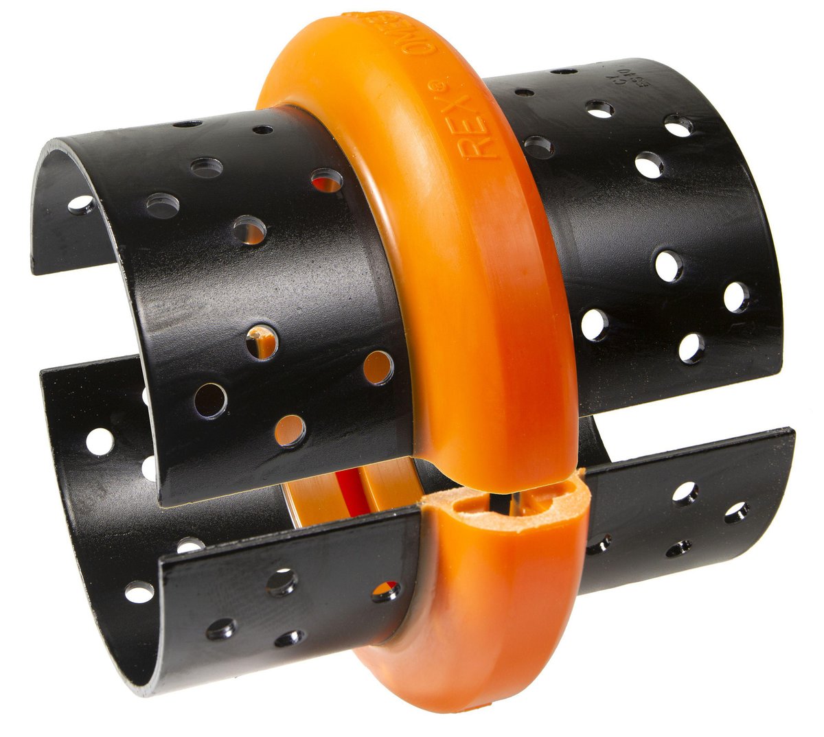 Rexnord Omega® Spacer fleksibel koblingselement i orange Urethan. Ikke-smurt, fleksibel og delt i halve dækkoblinger til krævende applikationer. ATEX certificeret.