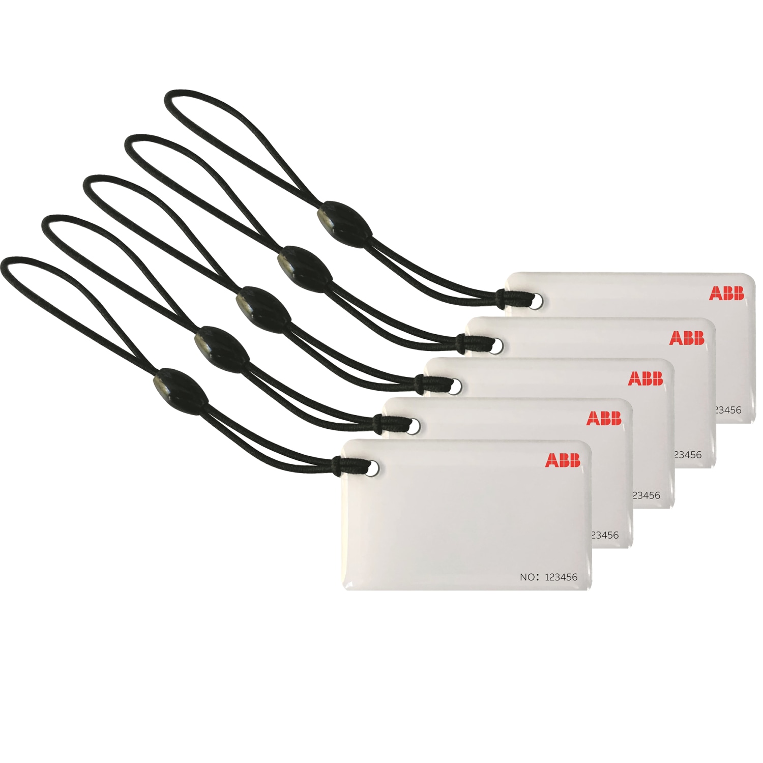 RFID-kort til nøglering, der kan parres med ABB Terra AC-ladere med RFID-læser. Hvert kort har et ABB-logo og varenummeret indeholder 5 stk.