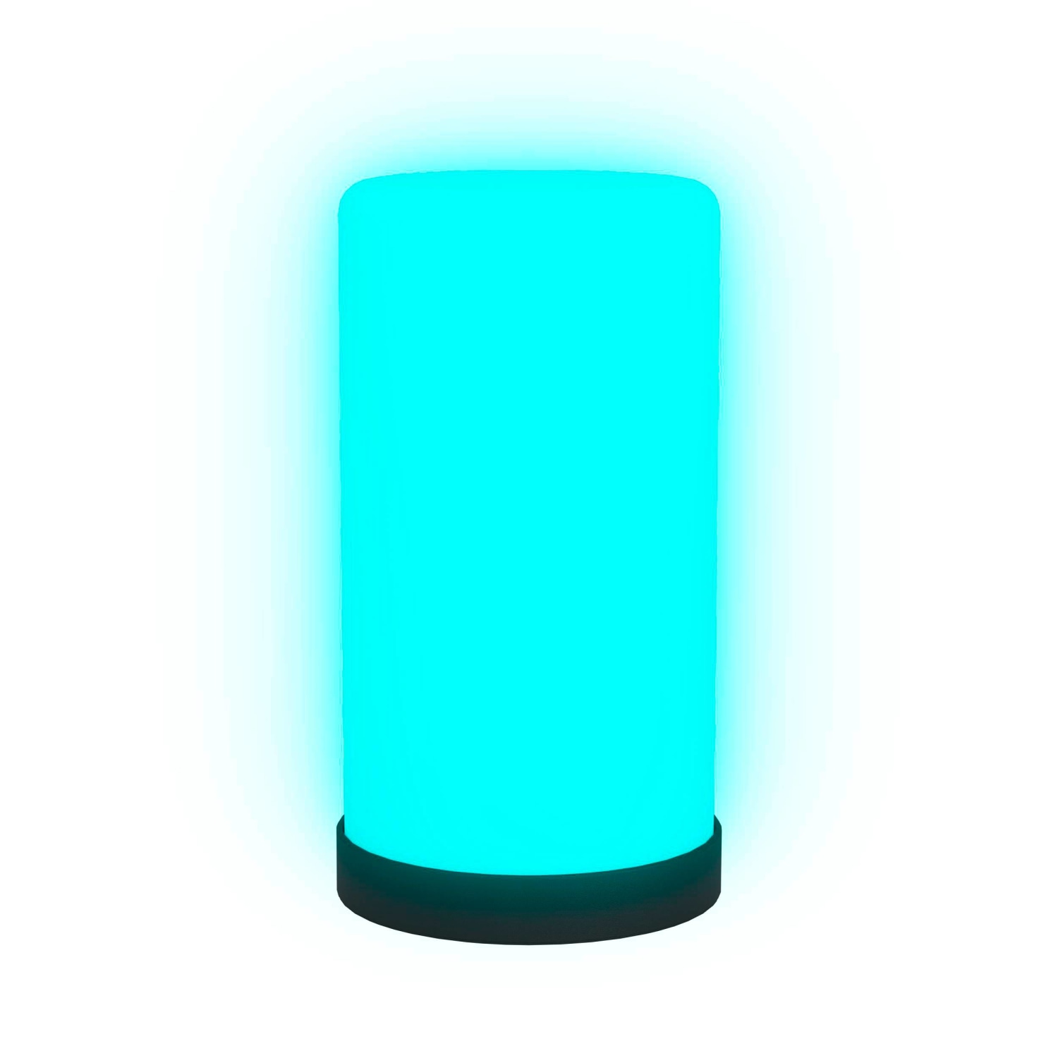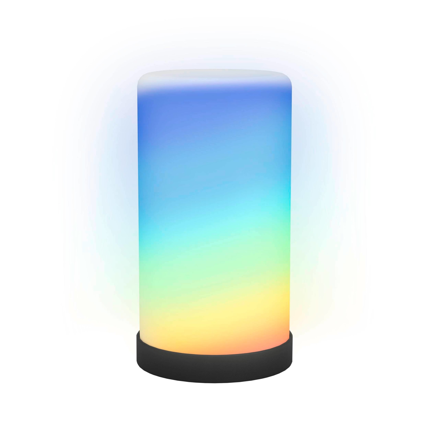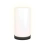 Denne EGLO RGBIC bordlampe er en cylinderformet lampe med en sort fod og en hvid skærm. Lampen er 22 cm høj og har en diameter på 12 cm.