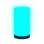 EGLO RGBIC cylinderformet bordlampe med sort fod og hvid skærm. Med indbygget mikrofon, der får lyset til at skifte farve i takt med musikken. Fjernbetjening medfølger.