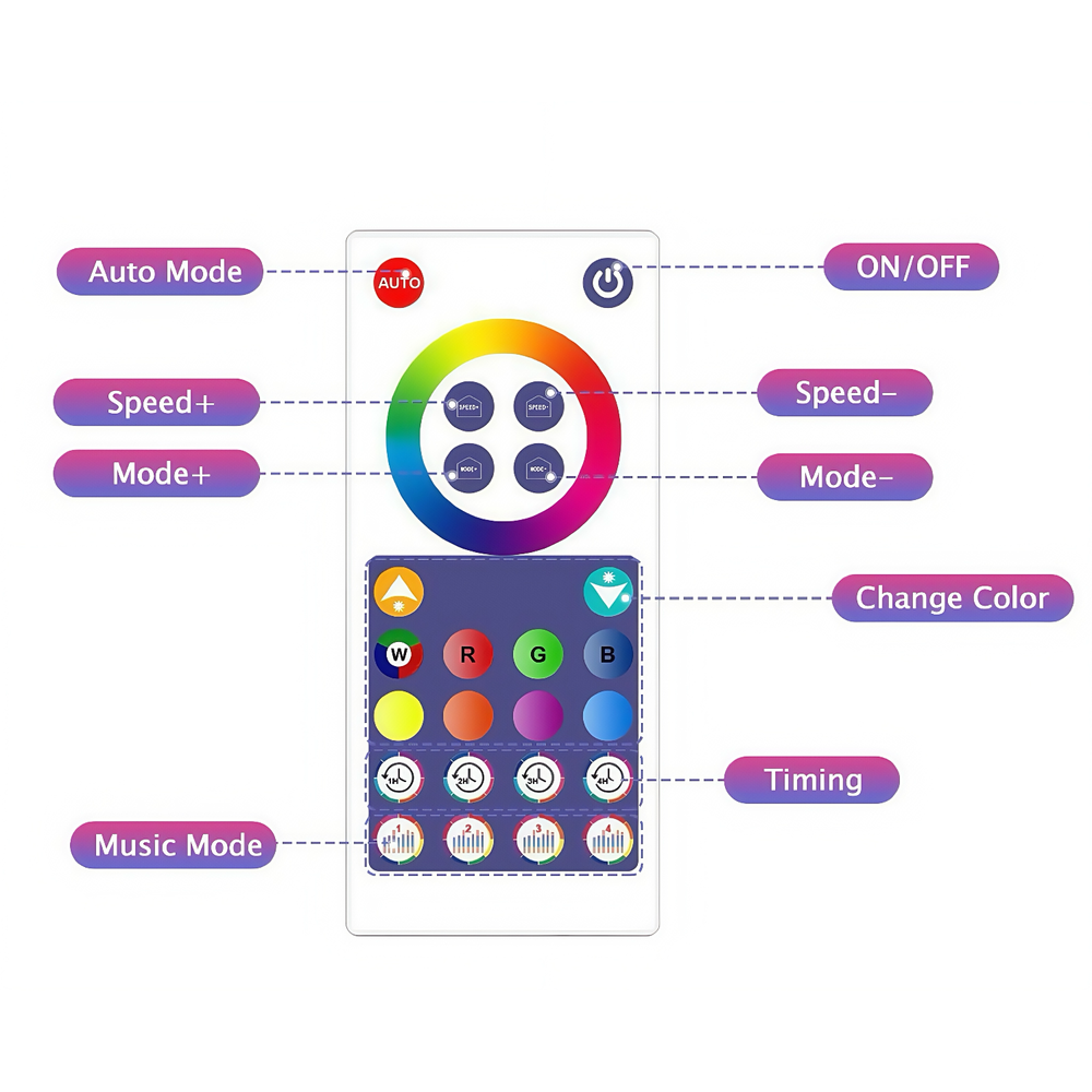 Denne ellipseformede RGBIC lampe er designet til at skabe den perfekte stemning i ethvert rum. Med dens kompakte mål på 25 x 15 cm og en effekt på 10W, er den ideel til både hyggelige aftener og festlige lejligheder. Lampen leveres med en praktisk fjernbetjening, der giver dig fuld kontrol over farver og lysstyrke, så du nemt kan tilpasse belysningen til enhver situation.