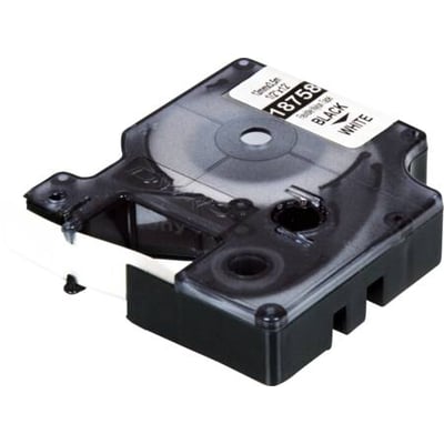 DYMO Rhino industri tape, fleksibel nylon, sort på hvid, 24mm x 3,5m. DYMO Rhino IND fleksible nylonetiketter er specifikt designet til buede overflader og mærkning af ledninger og kabler. Etiketterne har god vedhæftning på ledninger, kabler, buede og strukturerede overflader.