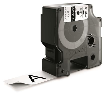 DYMO Rhino industri tape permanent polyester sort på klar 24mm x 5,5m. DYMO Rhino IND-permanent polyester anvendes til mærkning af paneler, klemmerækker, frontpaneler, hylder, kasser, beholdere, reoler mm.