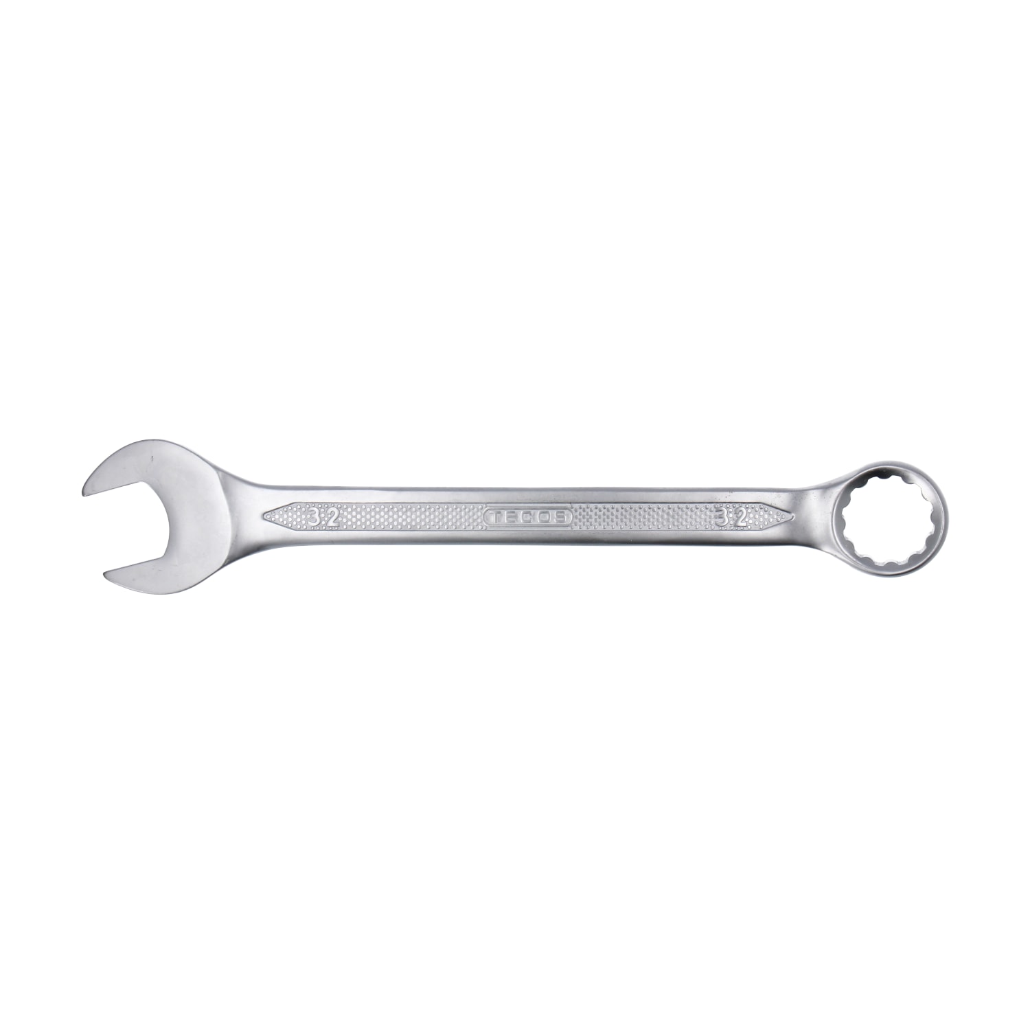 Tecos ringgaffelnøgle i chrom vanadium stål. Med blankpoleret hoved og silkemat overflade. Fremstillet med snævre tolerancer for perfekt pasform. Ringsiden har 12 kant og 15° vinkling.