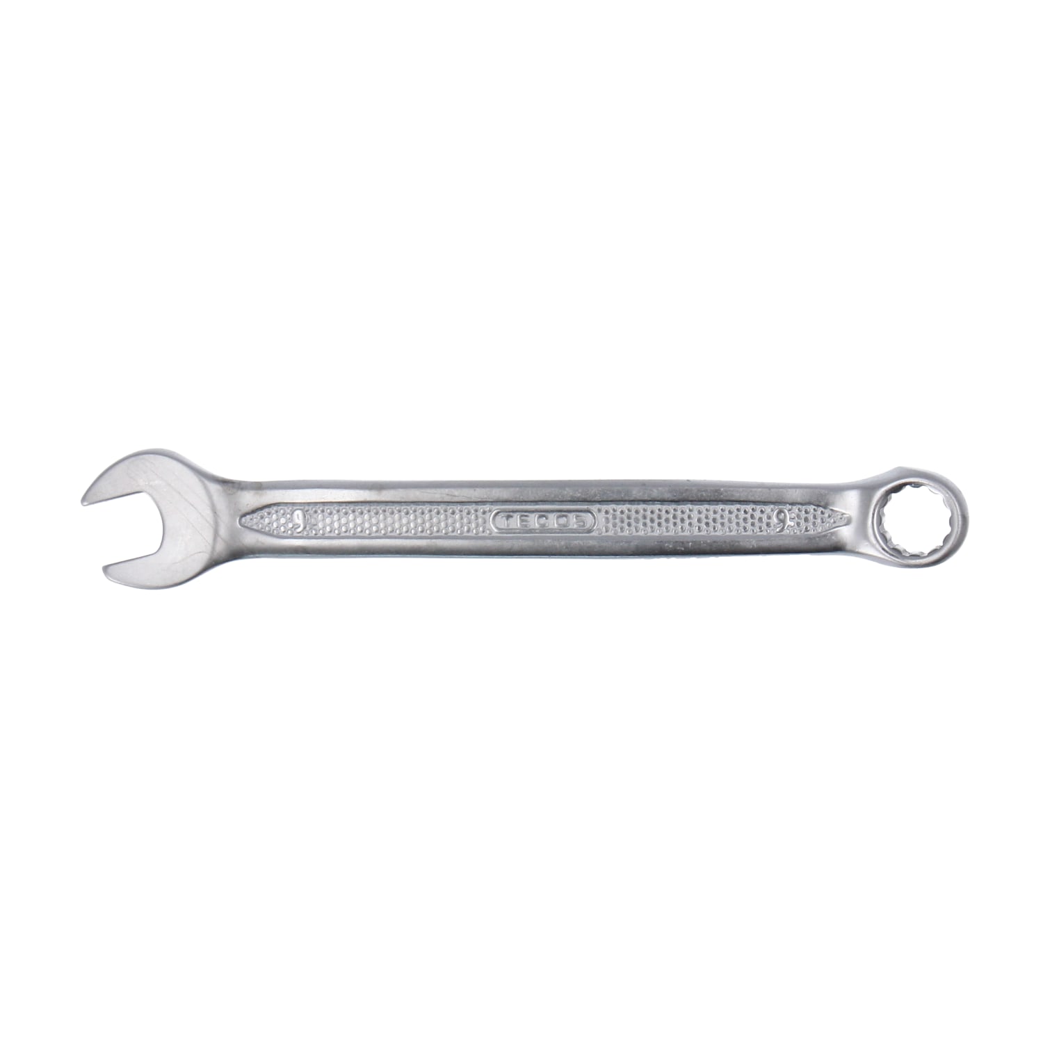 Tecos ringgaffelnøgle i krom vanadium stål med poleret hoved og mat overflade. Perfekt pasform på bolthovedet. Ringsiden har 12 kant og 15° vinkling.
