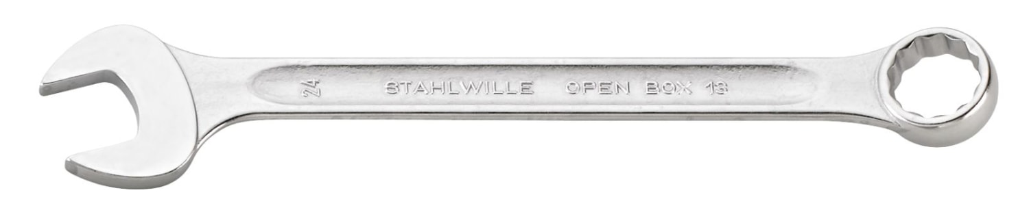 Robust ringgaffelnøgle fra Stahlwille i chrome-alloy-steel, designet med OPEN-BOX for optimal brugervenlighed og holdbarhed. Ideel til krævende opgaver.