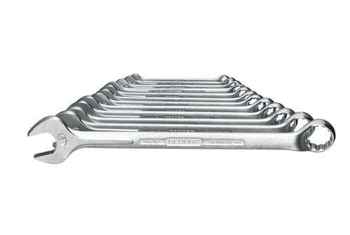 Gedore ringgaffelnøglesæt med 20 dele. Udført i henhold til DIN 3113 Form B, ISO 3318, ISO 7738. Størrelse 5 og 5,5mm med 6-kant ring, fra 6mm med UD-profil.