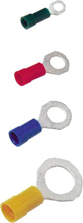 Isoleret ringkabelsko A0837R til 0,25-0,75mm² Cu-leder med laske M3,5. Materiale: Cu 99,95%, fortinnet, plast PC. Isoleringfarve: Grøn.