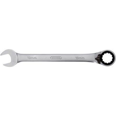 Tecos ringskraldenøgle med omstilbar skralde. Skralden har 72 tænder og kan omstilles til både højre og venstre. Skralder ved 5° bevægelse. Ringgrebet er vinklet 15°.