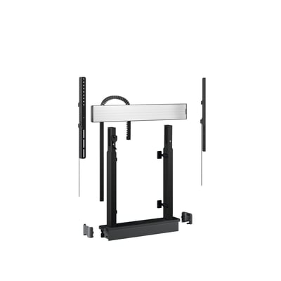 RISE 2005 motorized display- og TV-lift gulv-væg løsning til interaktive fladskærme op til 98" (max. 140 kg). Hurtig og nem justering af højden med en hastighed på 50 mm/s.
