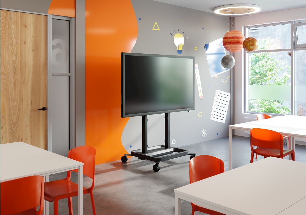 Skærmen flyttes jævnt og sikkert til den korrekte højde. En RISE 5305 motoriseret display- og TV-liftvogn er egnet til skærme op til 98" og 120 kg maks.